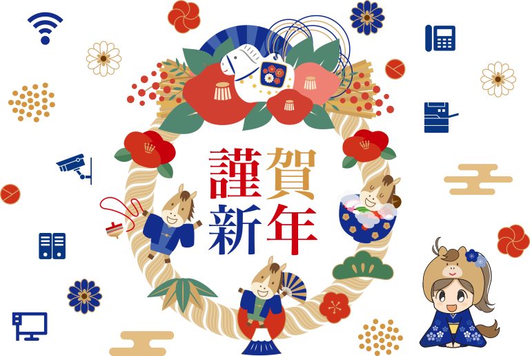 新年あけましておめでとうございます。旧年中は格別のお引き立てを賜り厚く御礼申し上げます。本年は午年にあたり、馬のように力強く前向きに一年を駆け抜け、社員一同、誠実な姿勢で業務に取り組んで参ります。どうぞ本年も変わらぬご愛